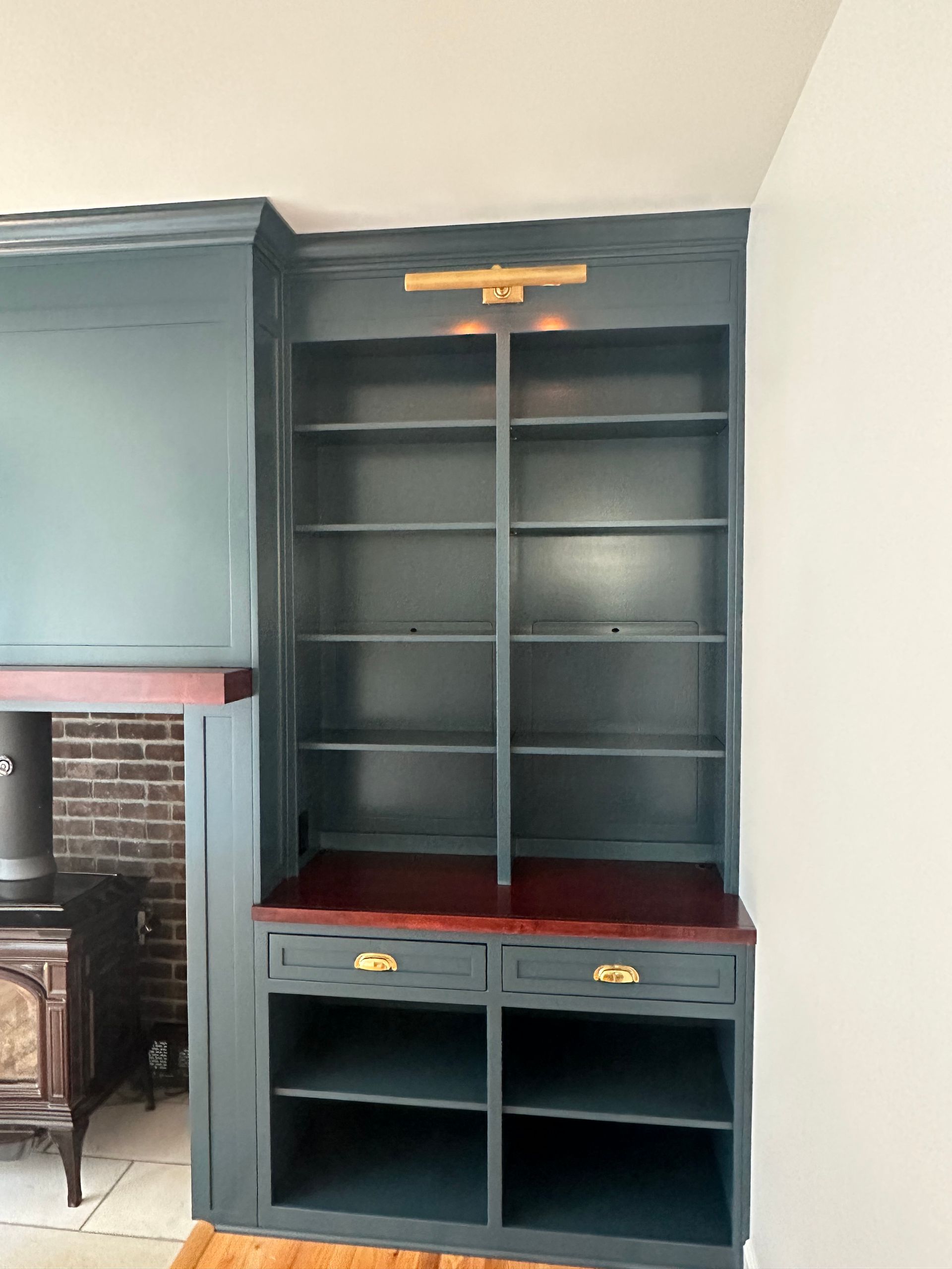 Whether you need built-in shelves, entertainment units, mudroom lockers, or custom bookcases, we provide personalized solutions to meet your unique needs. Our cabinets are built in-house, ensuring premier craftsmanship and seamless installations.